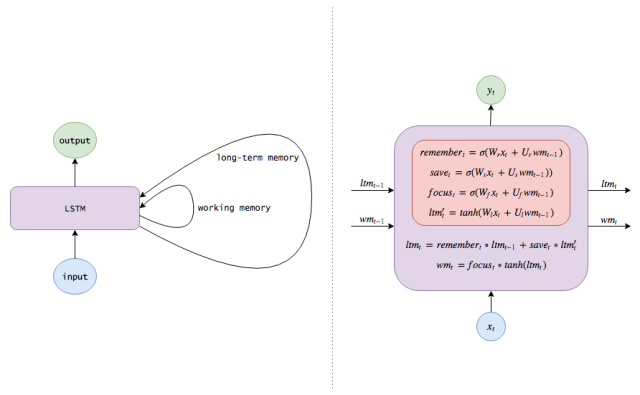 令人惊奇的是我们并未在LSTM方程式中明确规定输入(保存)、遗忘(记忆)和输出(注意)门的工作方式。神经网络自己学会了最好的工作方式。