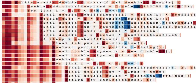 首先我启动了一个EC2 p2.xlarge竞价实例(spot instance),在Apache Commons Lang codebase上训练了一个3层LSTM。这是该LSTM在数小时后生成的一个程序。