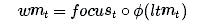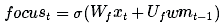 接下来,让我们更新一下工作记忆。我们想要学习如何将我们的长期记忆聚焦到能立刻发挥作用的信息上。(换句话说,我们想要学习需要将哪些数据从外接硬盘中转移到用于工作的笔记本上)。因此,此处我们来学习一下关注/注意向量(focus/attention vector):