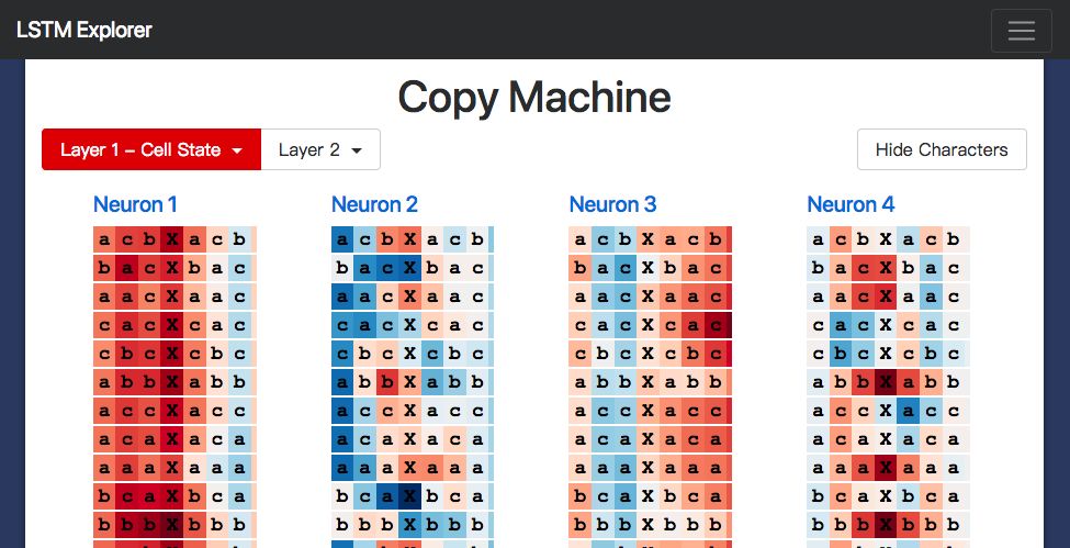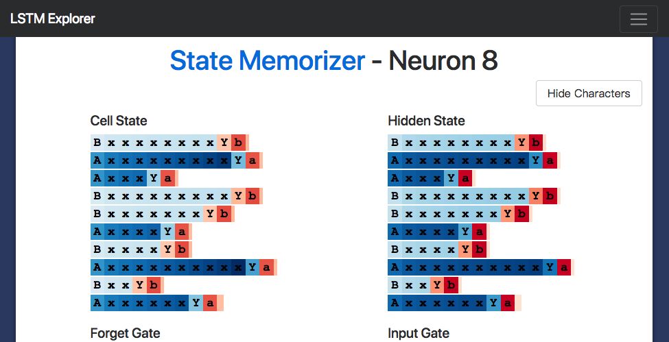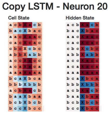 让我们研究得更深一些。我们在上一节中探讨了几个隐状态的实例,但是我还想使用LSTM的cell状态以及其他记忆机制。它们会如我们预期的那样被激活吗?或者说,是否存在令人意想不到的模式呢?
