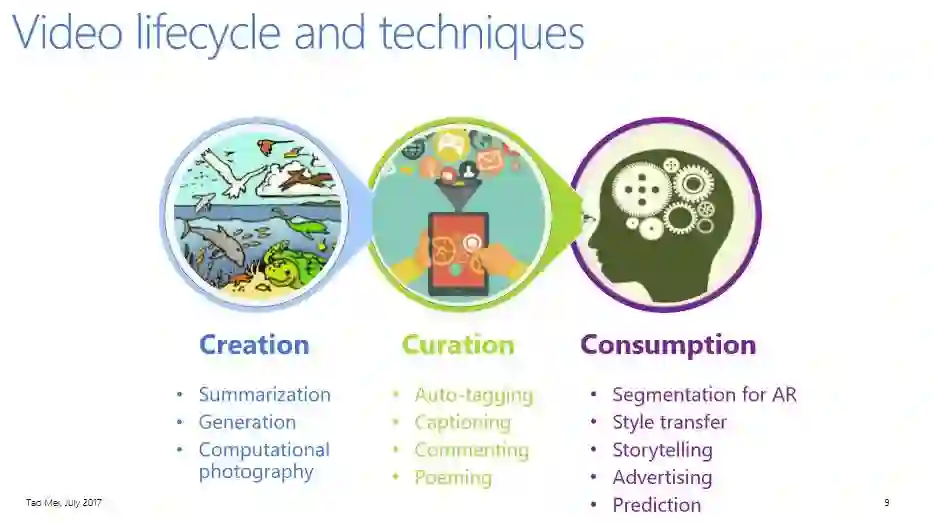 7月9日,微软亚洲研究院资深研究员梅涛博士在CCF-GAIR 2017全球人工智能与机器人峰会上进行了主题为《Video Content 3C: Creation, Curation, Consumption》的演讲,即视频的创造、处理和消费,分享了多年来在视频研究领域的收获和心得。文章转载自微信公众号“AI科技评论”。