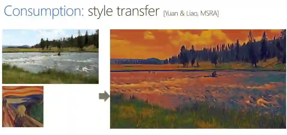 我们另外还做style transfer(风格转移),给你一个油画或者卡通,能不能把这个风格转移到视频中,可以把这个水的波纹表达出来。