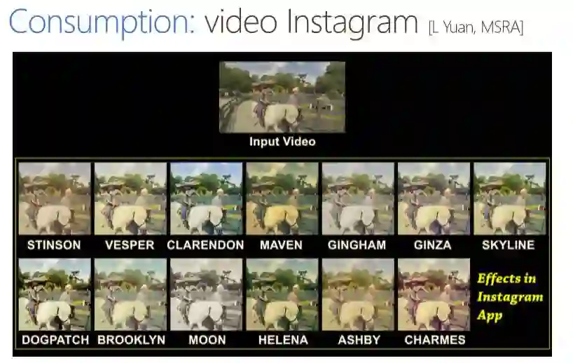 还有Storytelling(讲故事),我能不能给你提供服务,让你的图片、视频变得更好,这都是机器产生的效果(见PPT)。这个风格叫Fashion,我们只要加上人工的处理,视频就可以让你的图片变得更加时尚。这很容易用在一些to C(针对消费者的市场)的场景里面。