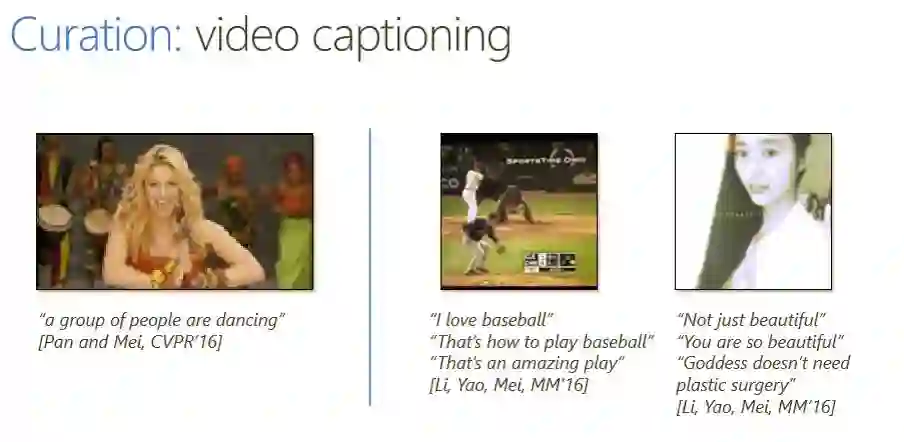 “比如给定这段视频,我们能不能生成一句话来描述这个Video?以前我们说这个Video是一个舞蹈,现在可以告诉你这是一群人在跳一段什么舞蹈,这个技术就叫Video Captioning。这个技术使得自动生成视频的标题成为可能。”