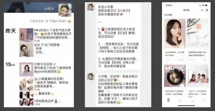 第三,个性化。诸如完美日记,它的每一个销售人员虽然都叫“小完子”,但是你加的这个“小完子”和他加的那个“小完子”不一样,这就是个性化。这个“小完子”和你的沟通内容,以及对你的喜好掌握也更加个性化。如此的个性化靠单向交流关系很难实现。