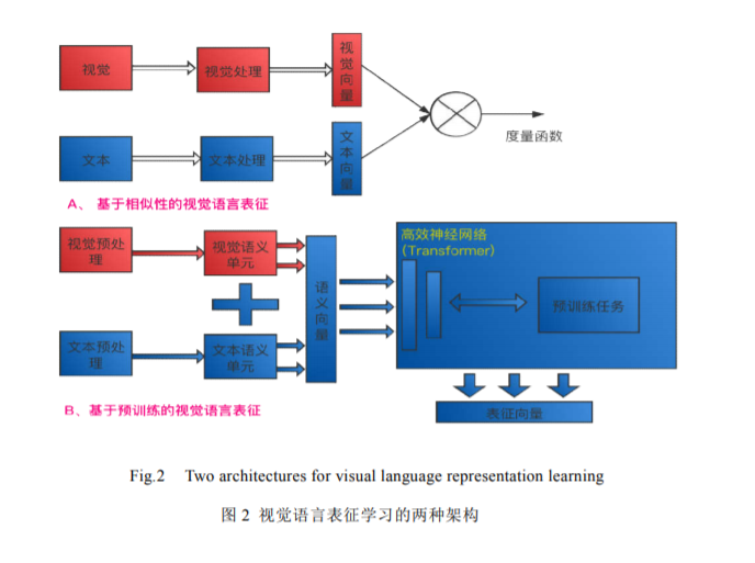 我们生活在一个由大量不同模态内容构建而成的多媒体世界中,不同模态信息之间具有高度的相关性和互补性,多模态表征学习的主要目的就是挖掘出不同模态之间的共性和特性,产生出可以表示多模态信息的隐含向量.该文章主要介绍了目前应用较广的视觉语言表征的相应研究工作,包括传统的基于相似性模型的研究方法和目前主流的基于语言模型的预训练的方法.目前比较好的思路和解决方案是将视觉特征语义化然后与文本特征通过一个强大的特征抽取器产生出表征,其中Transformer[1]作为主要的特征抽取器被应用表征学习的各类任务中.文章分别从研究背景、不同研究方法的划分、测评方法、未来发展趋势等几个不同角度进行阐述.