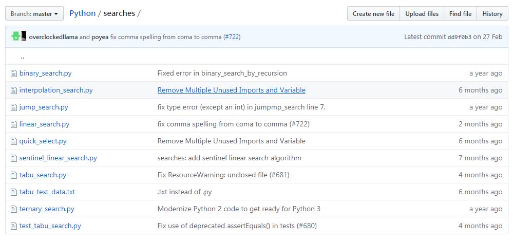 针对于查找问题,作者在 searches 文件夹中给出了包括顺序查找、二分查找、禁忌搜索等常见查找算法的实现。