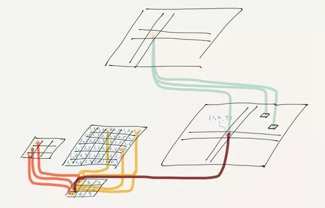 看,其实每一个神经元都是一个「单词」(或是「概念」/「抽象」/「特征」)。只不过低层神经元描述的「单词」抽象程度更低。比如:第二层那个 #(1, 4, 7) 神经元代表的是「在视网膜的最左边出现一条竖线」,而其上层那个则没有「在视网膜的最左边」这一约束。