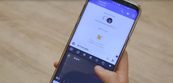 接下来,男主持人大力推荐了自带翻译功能的百度输入法,并且跟正在学习中文的朋友一起测试了语音输入直接翻译的功能。