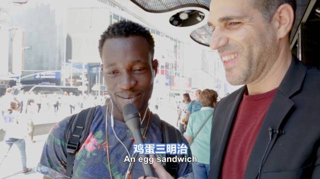 这个视频由一段有趣的街头采访引入,男子先是在美国的大街上采访路人是否认识中国美食“煎饼果子”,然而我们的黑人朋友表示“一脸懵逼”;