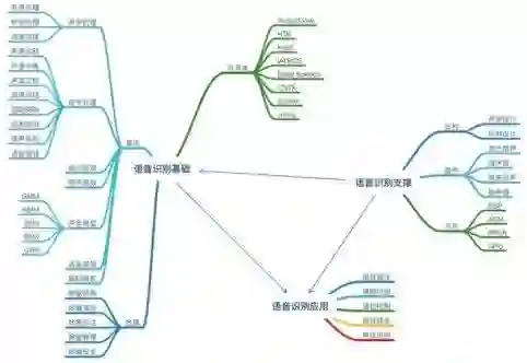 语音识别的知识体系可以划分为三个大的部分:专业基础、支撑技能和应用技能。语音识别的专业基础又包括了算法基础、数据知识和开源平台,其中算法基础是语音识别系统的核心知识,包括了声学机理、信号处理、声学模型、语言模型和解码搜索等。