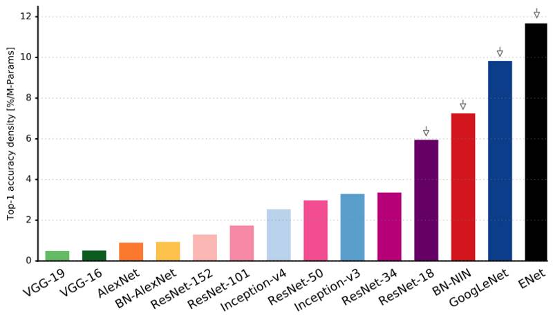 正如你在图表中看到的,ENet 的每个参数都具有极高的准确性,并没有使用任何其他的神经网络。