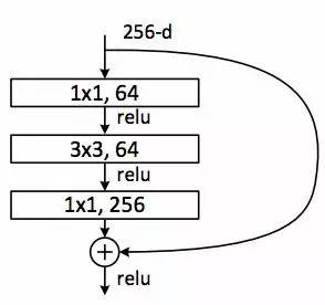 拥有大量层的 ResNet 开始利用与 Inception 瓶颈相似的瓶颈层,如图所示: