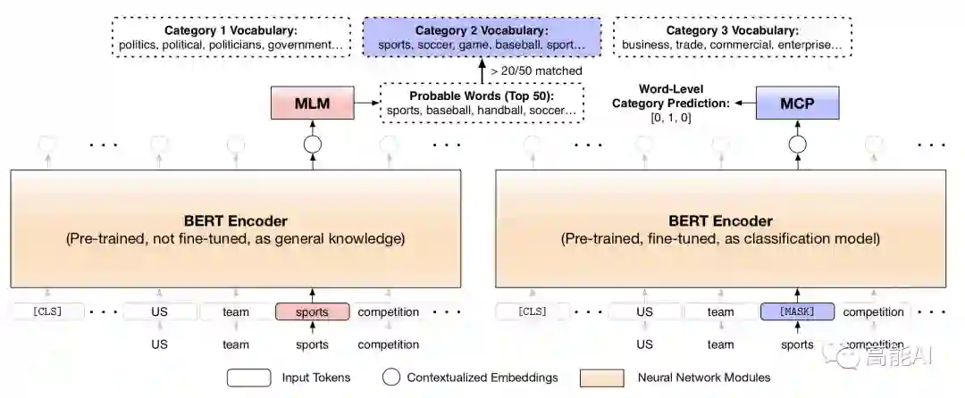 在做文本分类的时候,我们可以根据标签名称联想到与之相关联的其他关键词,这些关键词代表其类别。当然,这就需要我们从一个蕴含常识的模型去理解每个标签的语义。很明显,BERT等预训练LM模型就是一个首选!