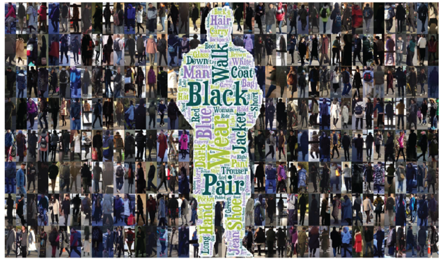 为了进一步推动该课题后续研究的发展,本研究团队在MSMT17基础上,构建了一个全新的真实场景跨模态行人重识别数据集(Real Scenarios Text-based Person Reidentification dataset, RSTPReid),其中每个行人的5张图像均由不同相机在不同的时间、地点、天气、光照、视角等条件下拍摄得到,共计20000余张图片,40000余条文本标注信息(如图3所示)。与CUHK-PEDES相比,RSTPReid更加复杂、更具挑战性,且更加接近实际的应用场景。目前,该数据集发布在GitHub上:
