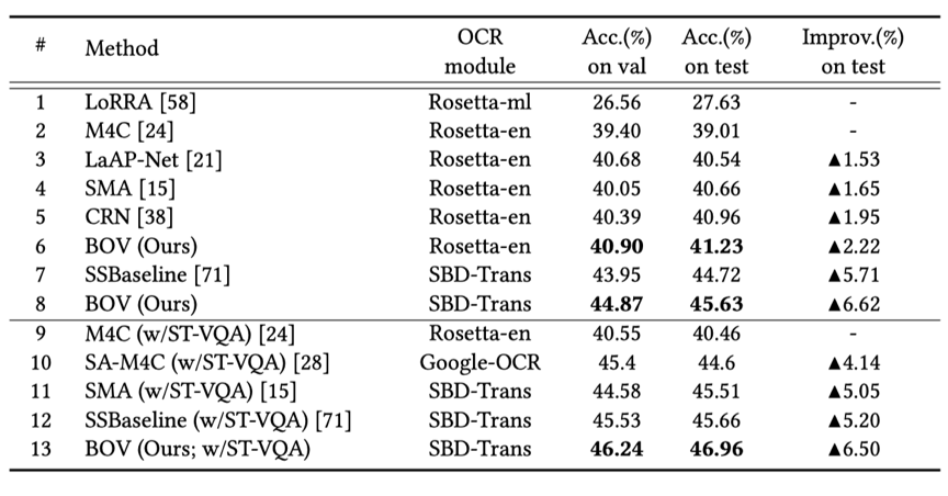 表 1 BOV与已有方法在TextVQA数据集上的比较