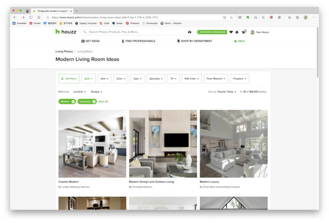 早期我最常浏览的是被誉为「家装维基百科」的 houzz[2],它是一个来自硅谷的室内设计网站,结合了世界各地的业主、设计师和摄影师,致力于推广最时尚和潮流的家装理念。