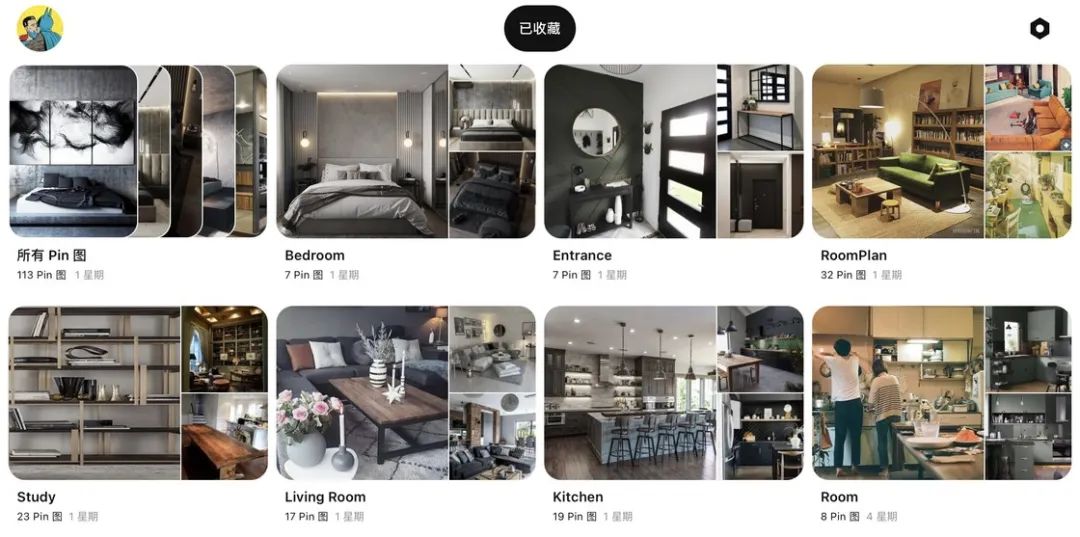所有我觉得不错的图片,我都会统一规整到 Pinterest 里。我根据不同的房间创建了对应的图版,会在添加时一一归档,但在这个过程中我有一点小巧思。