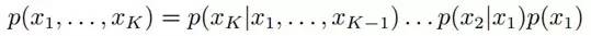 对于任意的随机变量,其联合概率可由各自的局部条件概率分布相乘而得出: