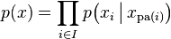 令G = (I,E)表示一个有向无环图(DAG),其中I代表图形中所有的节点的集合,而E代表有向连接线段的集合,且令X = (Xi)i ∈ I为其有向无环图中的某一节点i所代表的随机变量,若节点X的联合概率可以表示成: