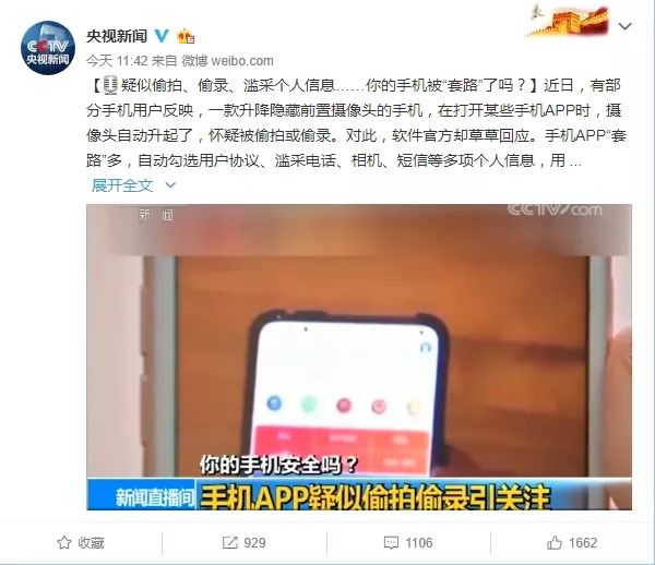 7月7日,据央视新闻报道,有用户反应,vivo NEX手机在打开浏览器时前置摄像头自动升起。