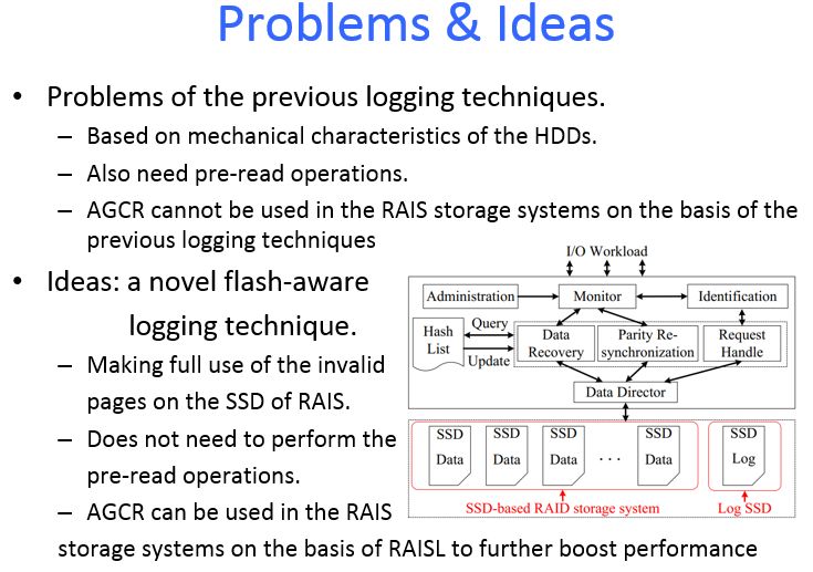 小写请求不仅会导致基于校验固态盘阵列的性能下降,而且会缩短各个成员盘的寿命。在传统磁盘阵列中有Parity Logging和Data Logging等日志技术通过延迟校验块更新优化RAID5的小写性能。但是这些现有的日志技术都是基于磁盘特性设计的,而没有考虑固态盘的特性。本文首先提出了一种基于闪存特性的日志技术RAISL,提高固态盘阵列的小写性能。RAISL充分利用固态盘内部由于异地更新产出的无效数据块,只需要将新数据块写入日志盘中。RAISL去掉了所有的预读操作,从而保证了负载的原始访问特性。在RAISL的基础上,本文结合根据负载访问特性调节闪存芯片读写代价的方法进一步提升固态盘阵列的读写性能。