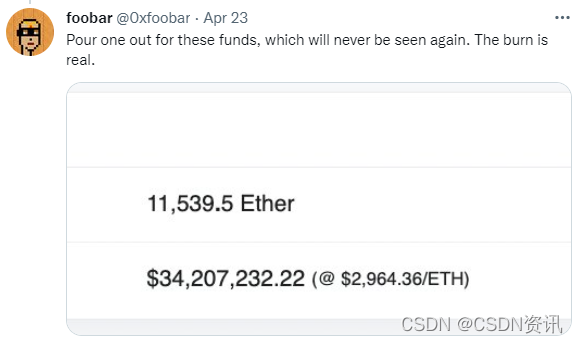 加密货币开发商foobar发推表示,锁定的以太币无论是个人还是开发商,都将无法取出。