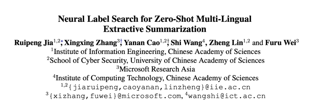 中国科学院信息工程研究所和微软亚洲研究院联合提出一种是基于 Zero-Shot 的多语言抽取式文本摘要模型。具体方法是使用在英文上预训练好的抽取式文本摘要模型来在其他低资源语言上直接进行摘要抽取;并针对多语言 Zero-Shot 中的单语言标签偏差问题,提出了多语言标签(Multilingual Label)标注算法和神经标签搜索模型(Neural Label Search for Summarization, NLSSum)。