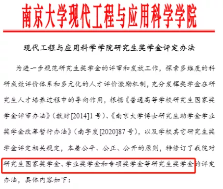 现代工程与应用科学学院新发布的《研究生奖学金评定办法》则对此进行了改革。《办法》中提到: