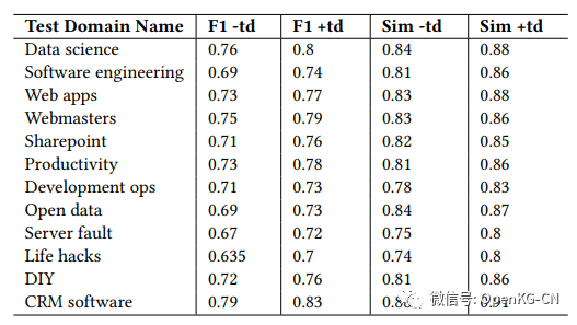 Figure 3 OPINE在domain adaption中的表现。“+td”表示测试domain在训练过程可见,“-td”表示测试domain在测试过程中不可见