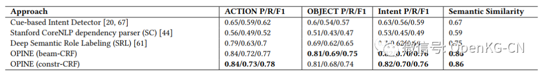 从图2可以看到,本文提出的OPINE相较于现有SRL、依存分析等更优,抽取意图的相似度提升超过0.1。