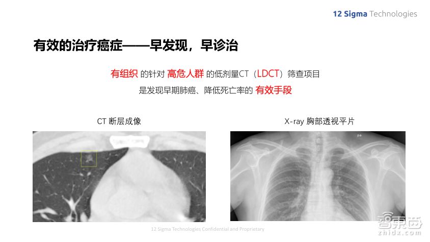 肺癌之所以可怕,是因为它的初期症状非常不明显,很容易被忽略掉,而到了晚期则会发生癌细胞转移,导致治疗非常困难。美国肿瘤协会一系列的研究表明,检测肺部结节是早期发现肺癌的一个非常有效的手段。由于肺部结节肿瘤的尺寸很小,在传统的X-ray胸部透视平片上是很难看到的,而通过低剂量CT进行早期筛查,能够极大地提高早期肺癌的诊断率。