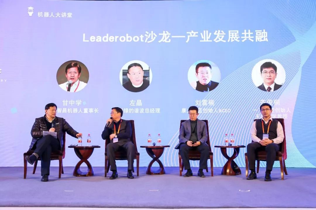 《Leaderobot沙龙-产业发展共融》沙龙环节由浙江智昌机器人董事长甘中学博士主持,苏州绿的谐波总经理左晶先生、北京康力优蓝机器人创始人兼CEO刘雪楠先生、一飞智控创始人、天津大学齐俊桐教授共同参与了这场论坛。各位嘉宾对各自的企业和所在领域进行了介绍,并对未来机器人发展的态势进行了预测,并围绕如何结合机器人应用走在行业前沿,资本市场与机器人企业的关系,政府与机器人企业的关系,消费市场中机器人行业的趋势等问题进行了作答。