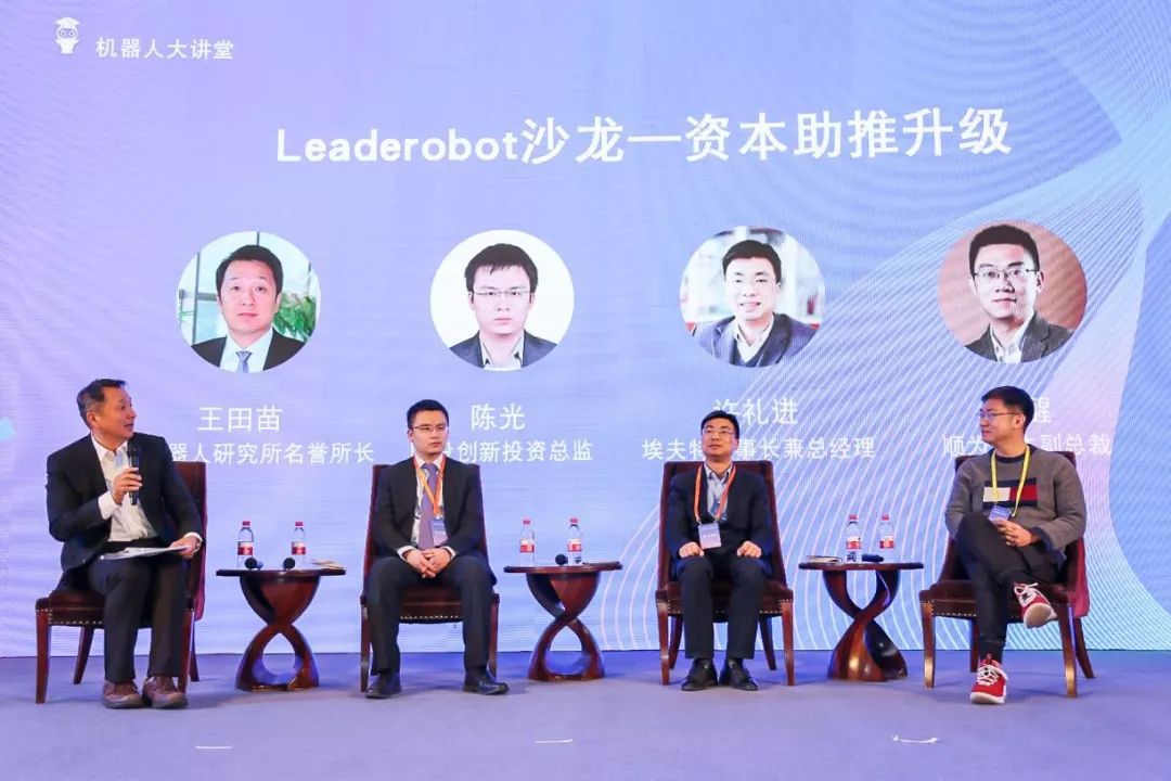 《Leaderobot沙龙-资本助推升级》沙龙环节由北京航空航天大学机器人研究所名誉所长王田苗教授主持,国投创新投资总监陈光先生、埃夫特公司董事长兼总经理许礼进先生、顺为资本副总裁孟醒先生共同参与。围绕经济寒冬来临的时候机器人行业和企业应该做什么样的反思,2019年投融资市场走势,科创板对于机器人和智能制造会带来什么机遇,to B端的机器人行业怎样抗住业绩压力,如何从资本的角度看公司的发展、机器人行业的人才培养模式,5G、新的智能材料、新的人工智能能给机器人带来哪些新的机会等问题进行了深入而精彩的讨论。
