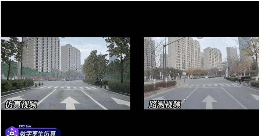 下面动图是我们和某头部车企合作完成的研究部分展示,左边是一个仿真视频,右边是路测视频,而且是实时的,利用这样一个环境来更好地研究我们的方法,最终的结果应该更具有实时性。