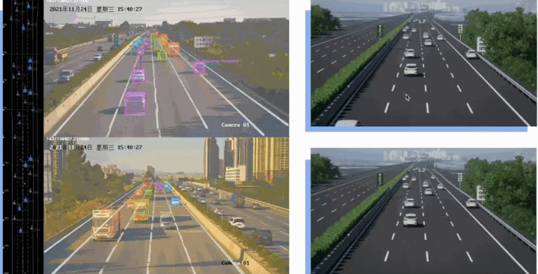 从我们过去做的一些工作可以得出,孪生最核心的一个维度是感知,如何在不同天气、不同状态、我们肉眼不可视的情况下,甚至在传感器很难去探测的情况下进行数字孪生,是我们需要探讨的一个话题。过去我们在自动驾驶和智能交通领域,会利用雷达等设备在夜间或者大雾天进行车辆轨迹跟踪,然后再进行孪生,使得我们对整个交通状况了如指掌。