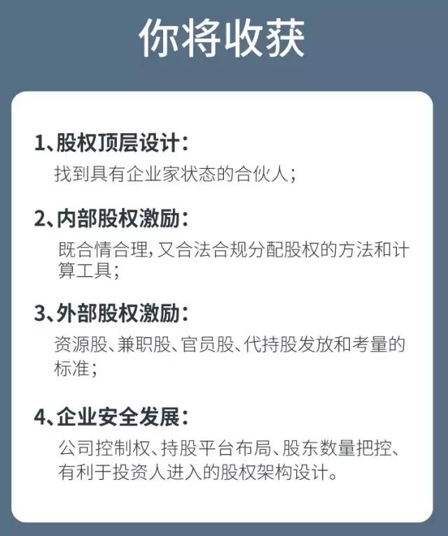 企业股权投资管理类的课程,听过的都知道,线下课起码5位数,甚至高达百万。关键有钱,也不一定能请到这么专业的股权专家。