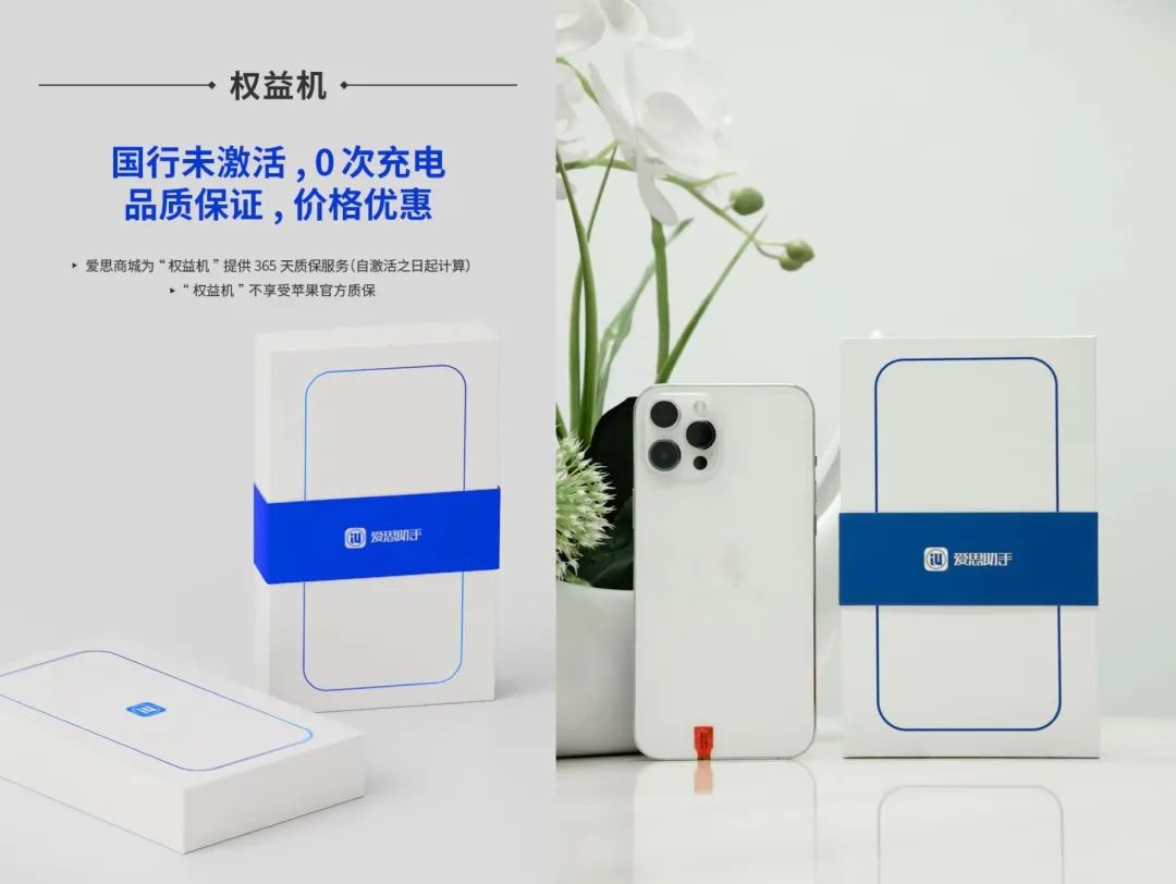 本次活动机型为 Apple 官方「权益机」,权益机是指苹果厂家通过第三方渠道统一打包给第三方商家无拆无修、纯原装、未激活未使用过的机器。为什么选择这一类机型呢?实际上就是 Apple 因目前售后成本以及维护成本增加,去掉了售后成本为渠道商提供价格优势的机器,除无官方保修之外,本质是完全与全新零售机器相同,也并非市面上的资源机/BS或者是7天无理由退货的机器。