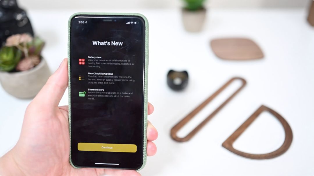 备忘录 App 新增欢迎页,标示了该应用的一些核心功能。比如共享文件夹、新增核对清单选项等。