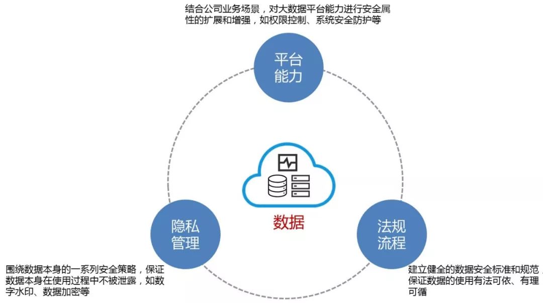 以终为始,我们在构建数据安全体系的指导原则就是,明确“让数据更加安全的被使用”的目标,打造以“数据”为中心,结合“平台能力”、“隐私管理”、“法规流程”三个要素,构建具有公司特色的数据安全体系,系统化解决数据安全问题,发挥数据的更大价值。