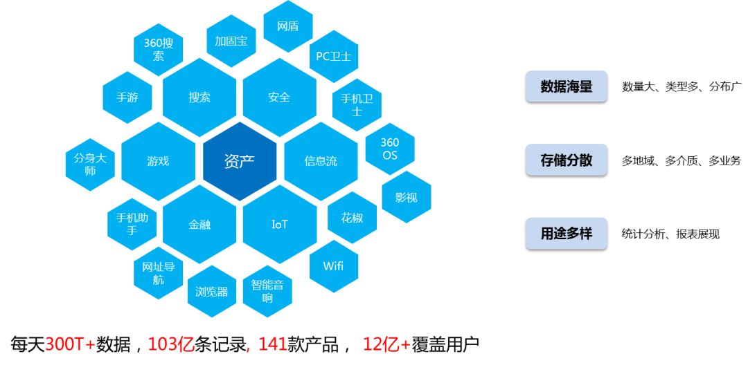 随着公司的发展、产品形态上的调整,产品覆盖面越来越广,在数据层面呈现出数据海量、存储分散、用途多样的特点。