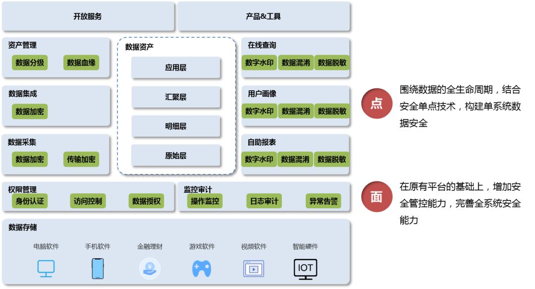 数据集中存放,如何做到数据平台管理和数据访问的权限分离?每个业务部门有多个角色,每个角色对应的数据权限都可能不一样,如何有效控制?数据一旦发生泄漏风险,如果做到溯源?跨产品的数据如何安全的共享?