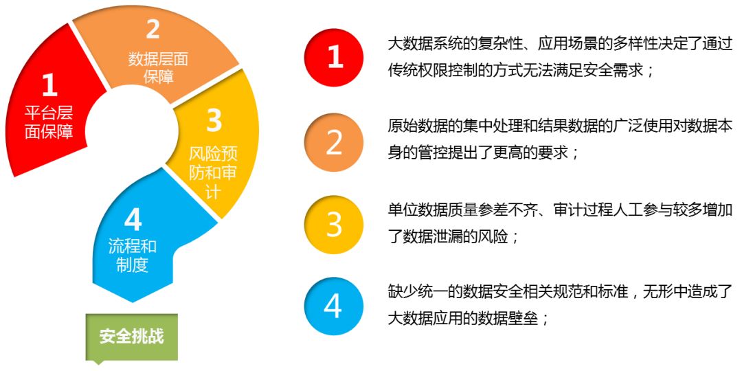 A2:正如我之前所说,企业的数据安全体系建设是一个非常大的话题,我还是结合我所从事的工作,谈谈在大数据中心建设过程中所面临的一些具体的问题和挑战以及解决思路和方案。