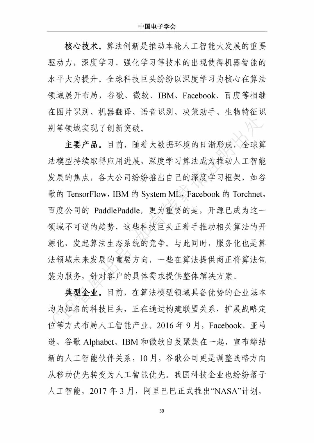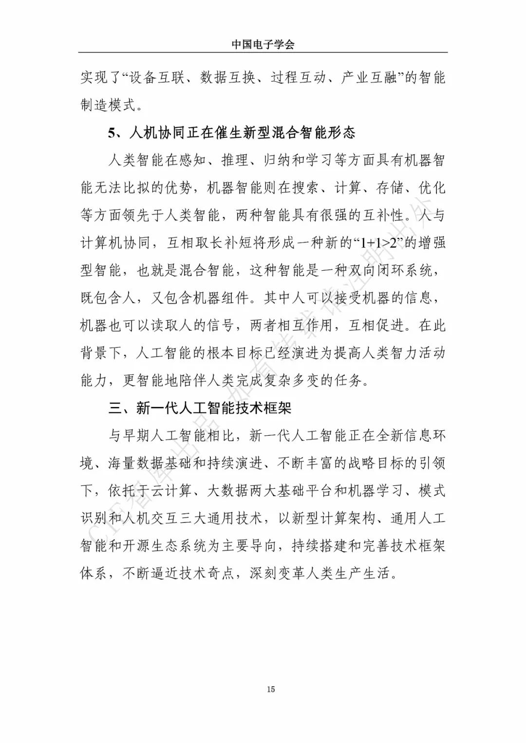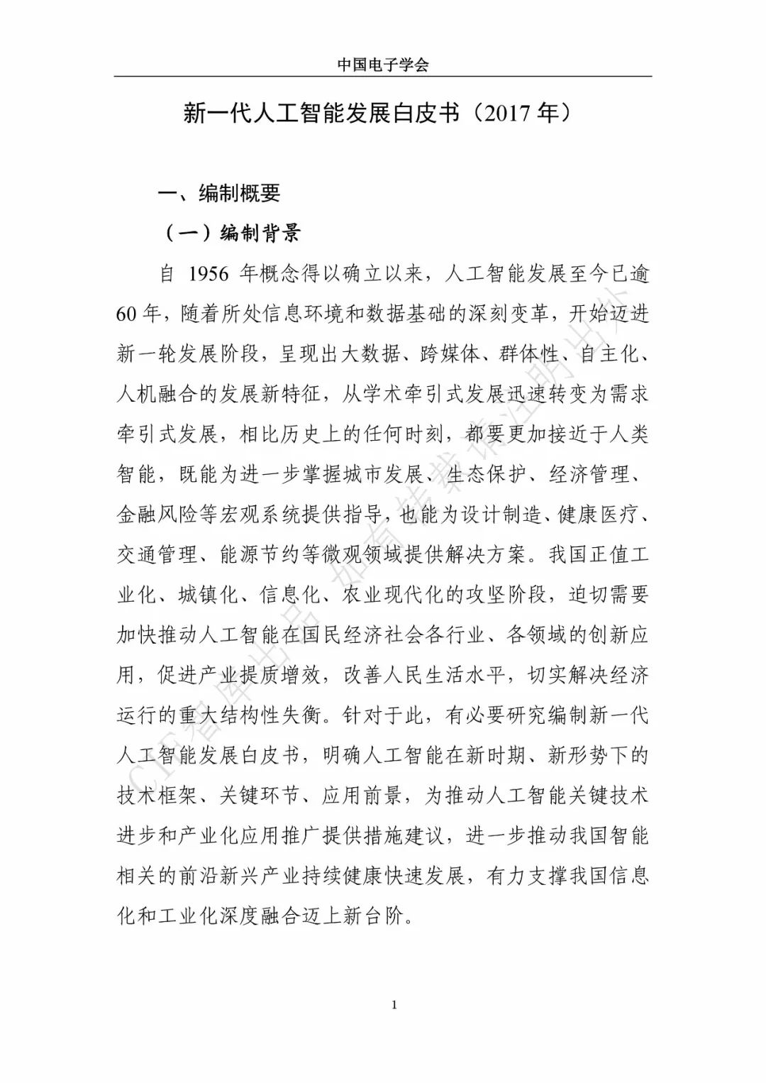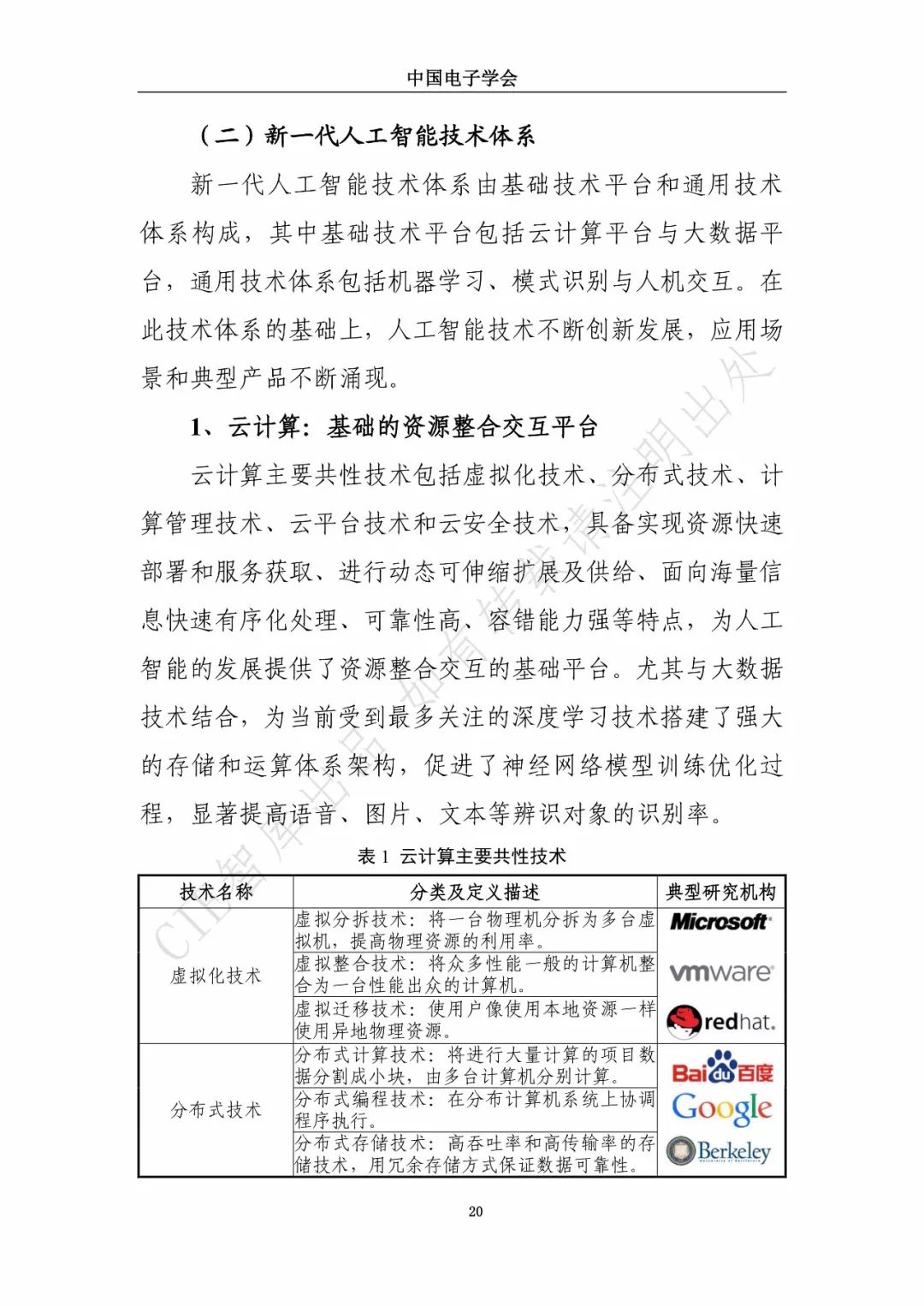 近日,中国电子学会/CIE智库发布了《新一代人工智能发展白皮书》。本白皮书重点围绕新一代人工智能面临的新形势、驱动的新因素、呈现的新特征,详细介绍了新一代人工智能发展特征、技术框架及产业化应用,展望了新一人工智能中长期技术及产业发展趋势,分析了人工智能领域的投融资特征及趋势,最后,提出了推动新一代人工智能发展的措施建议。