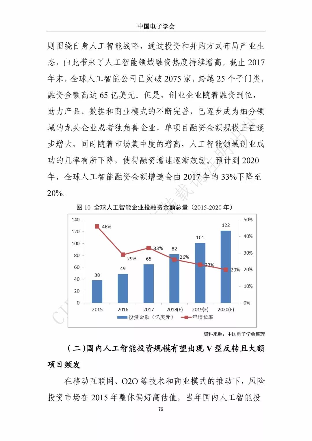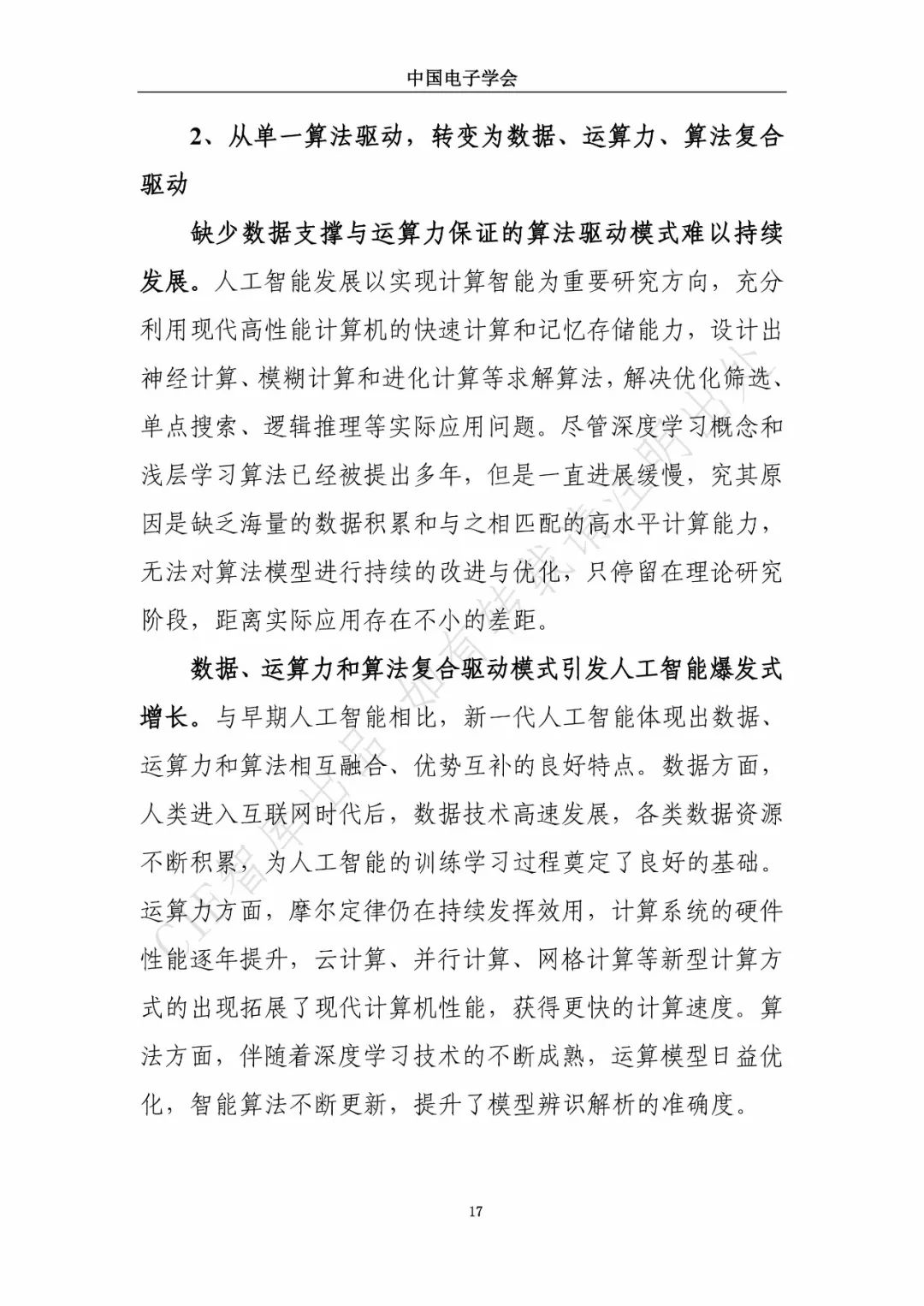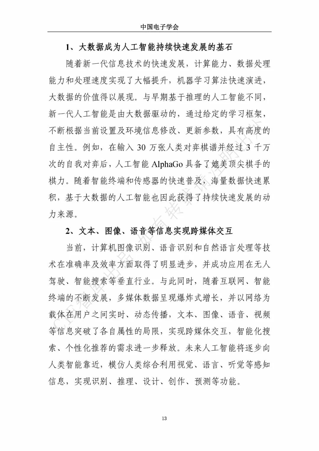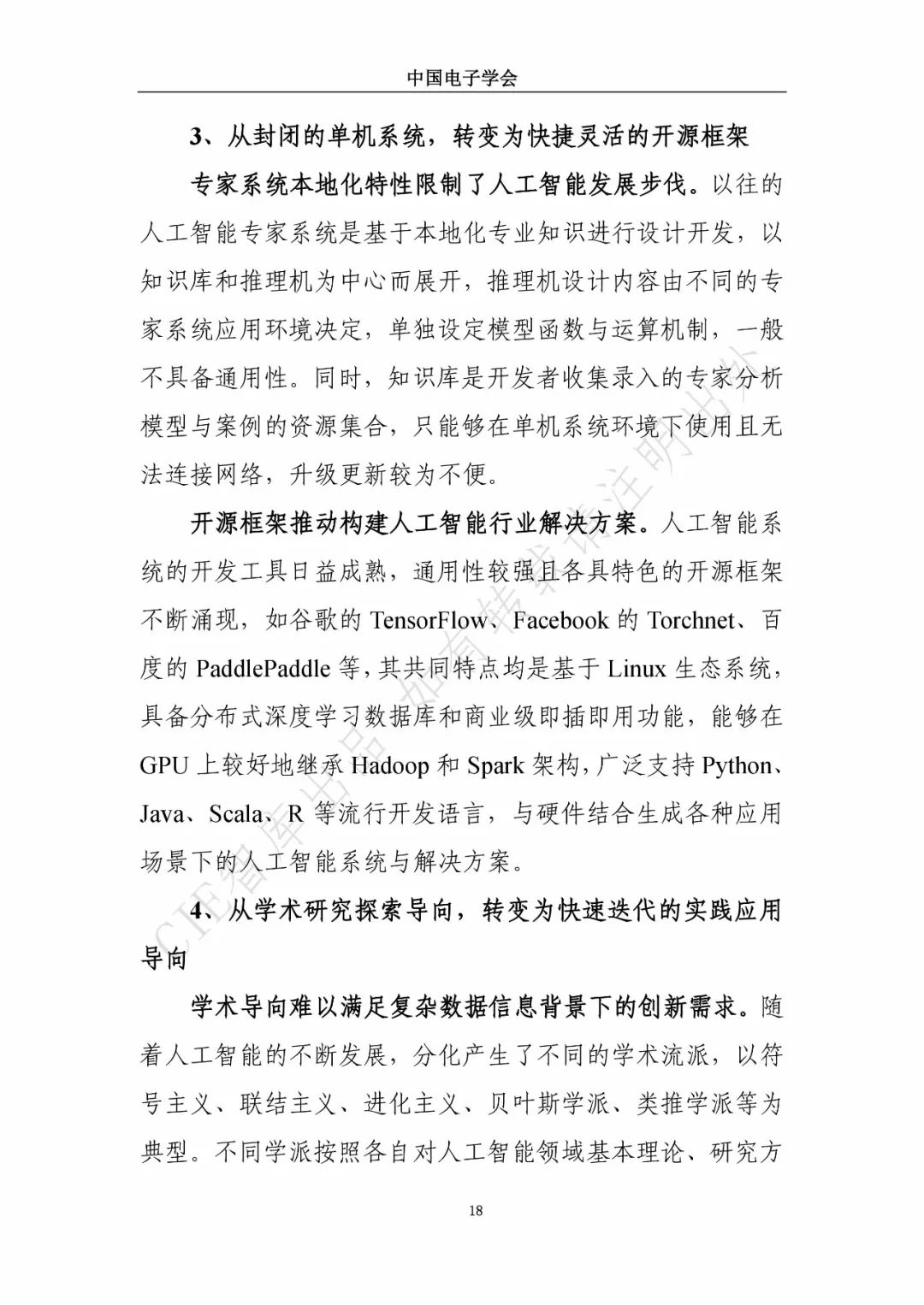 近日,中国电子学会/CIE智库发布了《新一代人工智能发展白皮书》。本白皮书重点围绕新一代人工智能面临的新形势、驱动的新因素、呈现的新特征,详细介绍了新一代人工智能发展特征、技术框架及产业化应用,展望了新一人工智能中长期技术及产业发展趋势,分析了人工智能领域的投融资特征及趋势,最后,提出了推动新一代人工智能发展的措施建议。