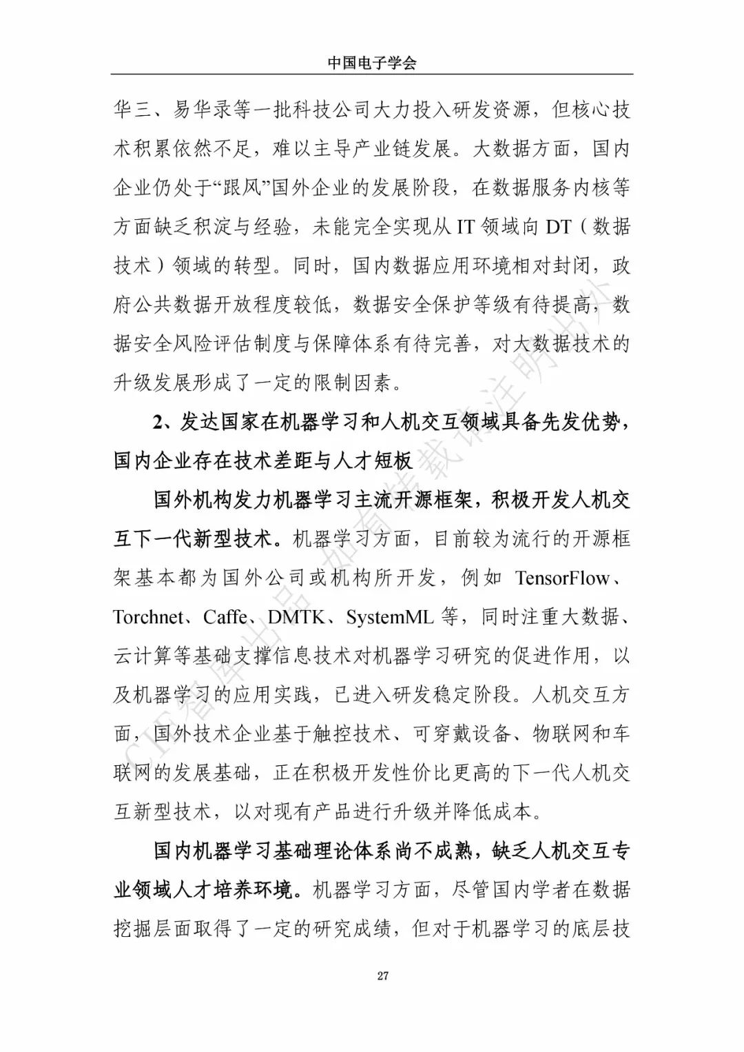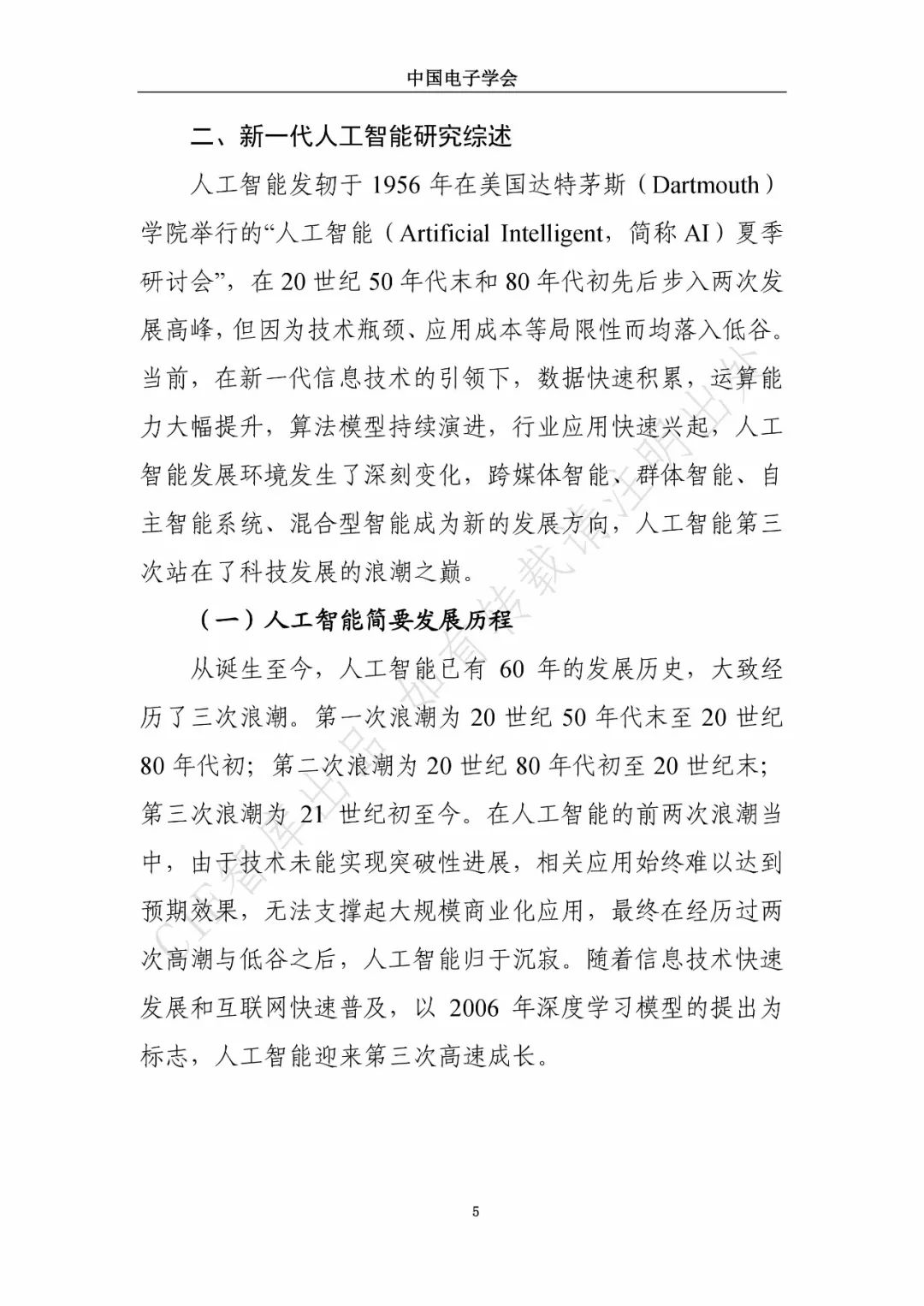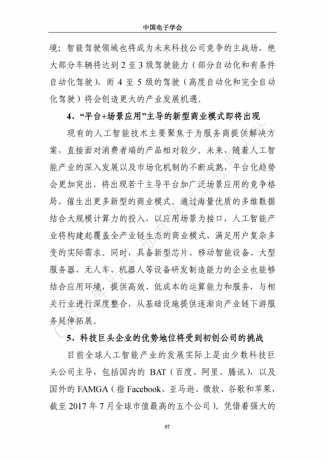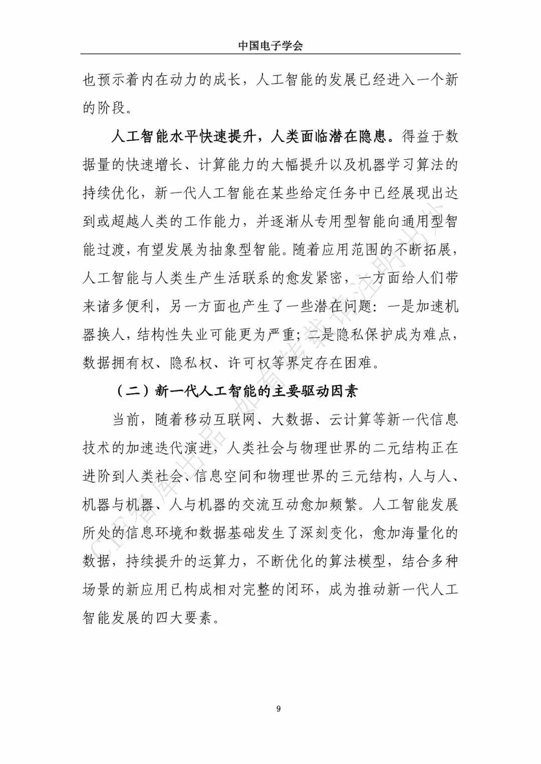 近日,中国电子学会/CIE智库发布了《新一代人工智能发展白皮书》。本白皮书重点围绕新一代人工智能面临的新形势、驱动的新因素、呈现的新特征,详细介绍了新一代人工智能发展特征、技术框架及产业化应用,展望了新一人工智能中长期技术及产业发展趋势,分析了人工智能领域的投融资特征及趋势,最后,提出了推动新一代人工智能发展的措施建议。