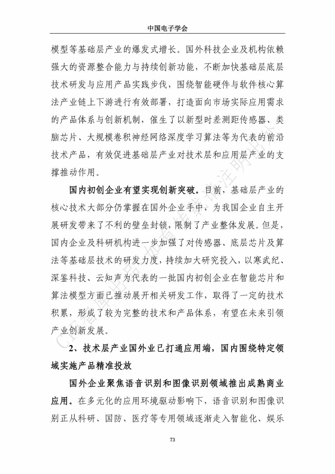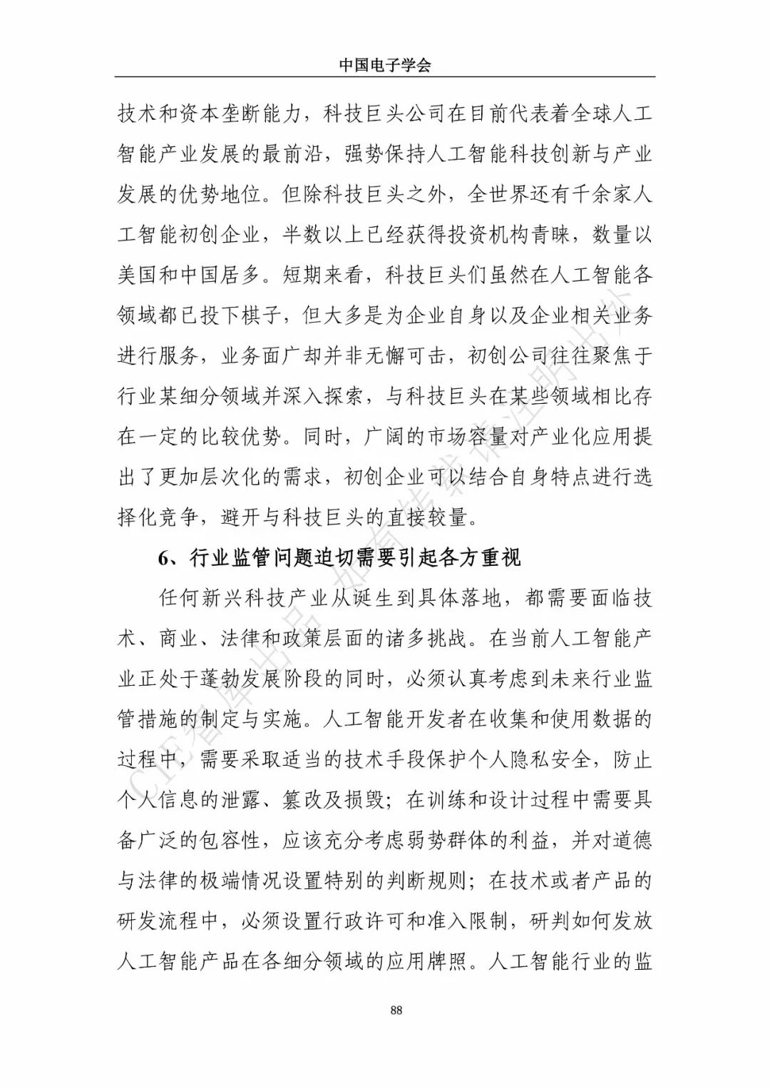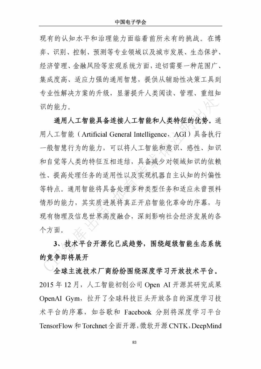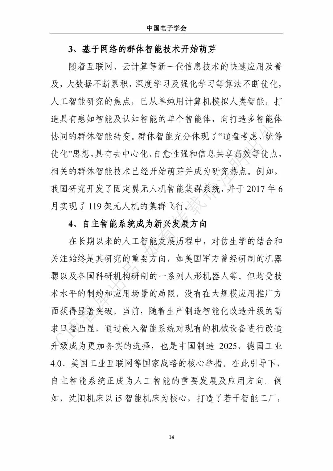近日,中国电子学会/CIE智库发布了《新一代人工智能发展白皮书》。本白皮书重点围绕新一代人工智能面临的新形势、驱动的新因素、呈现的新特征,详细介绍了新一代人工智能发展特征、技术框架及产业化应用,展望了新一人工智能中长期技术及产业发展趋势,分析了人工智能领域的投融资特征及趋势,最后,提出了推动新一代人工智能发展的措施建议。