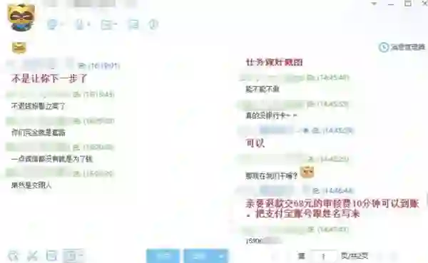 那么就是以退还保证金审核为由要求你再转账一笔款项;如下面这张聊天记录截图一样。