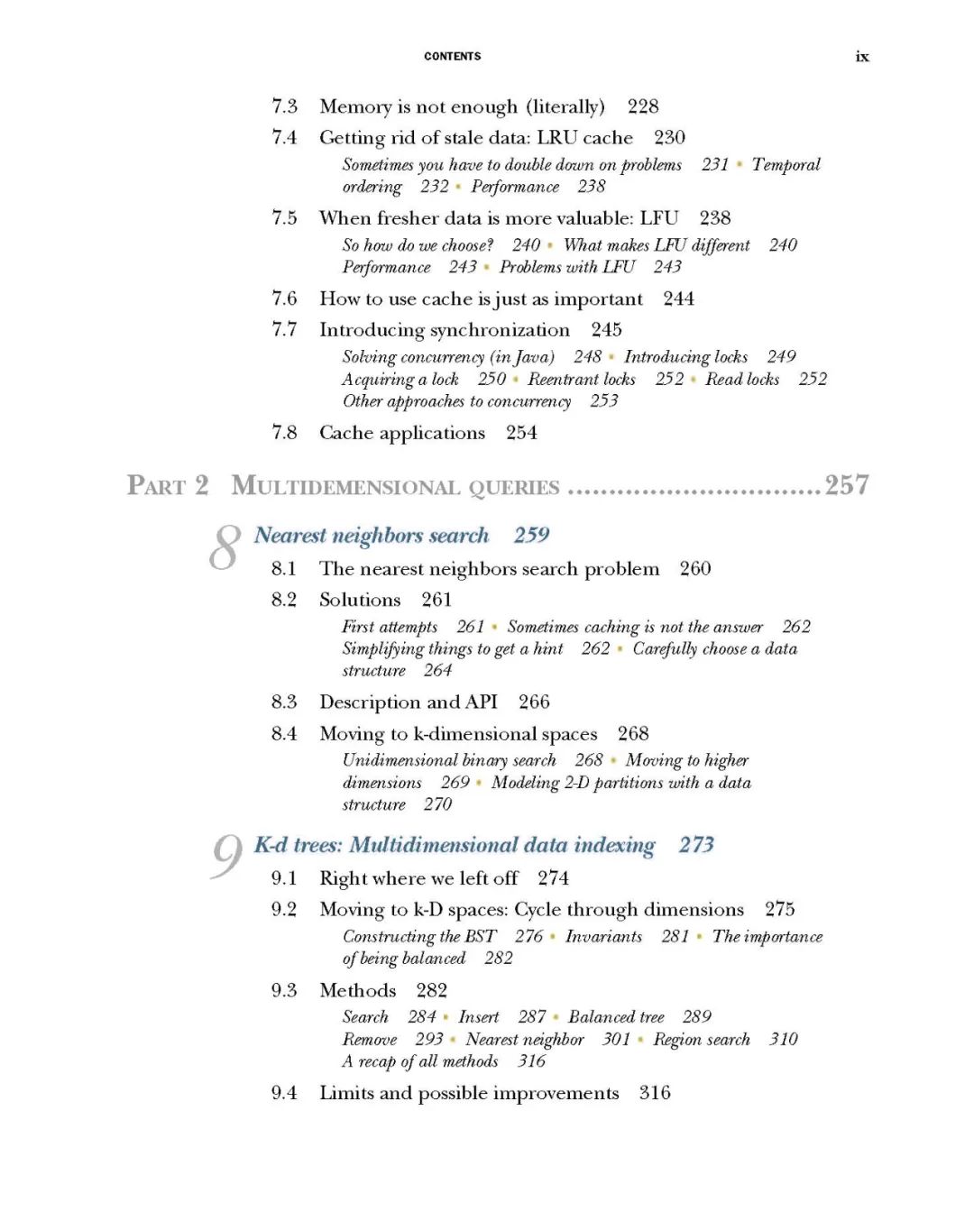 第2部分介绍了搜索中的另一种特殊情况: 处理多维数据、索引该数据和执行空间查询。我们将再次展示特别数据结构如何在使用基本搜索算法的基础上提供巨大的改进。但是,本部分还描述了其他重要的主题:集群、高度利用空间查询和分布式计算,特别是使用MapReduce编程模型。