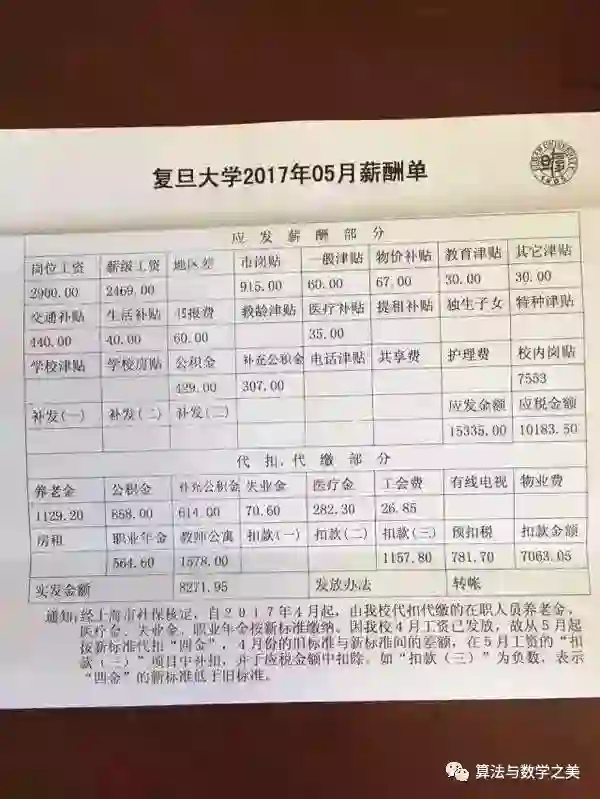 但是,“哭穷”的教授从来都不少。早些时候的北航讨薪案闹得沸沸扬扬,去年被曝光的一张复旦大学教授的工资条也在朋友圈热传: